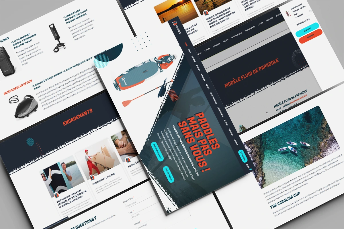 Le design joue sur des visuels immersifs et des parcours utilisateurs simplifiés, facilitant la découverte et l’achat des paddles.